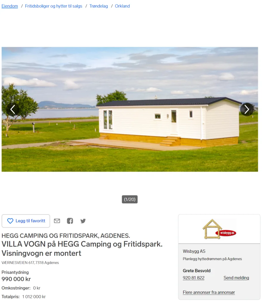Vi har nå lagt ut en ny annonse på salg av husvogn og tomt på finn.no. Mai 2022